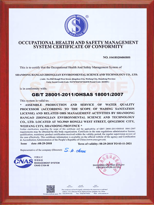 • 職業健康安全管理體系認證證書職業健康安全管理體系認證證書