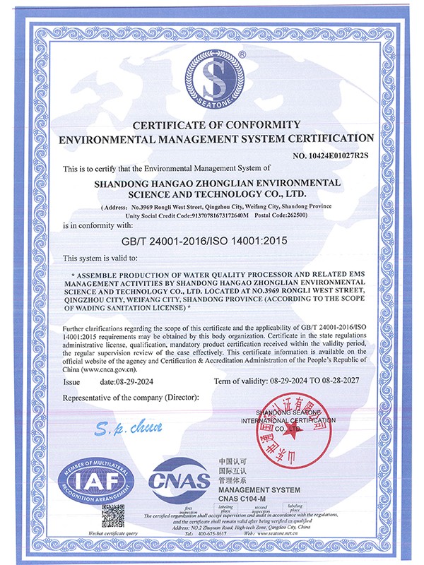 • 環境管理體系認證證書環境管理體系認證證書